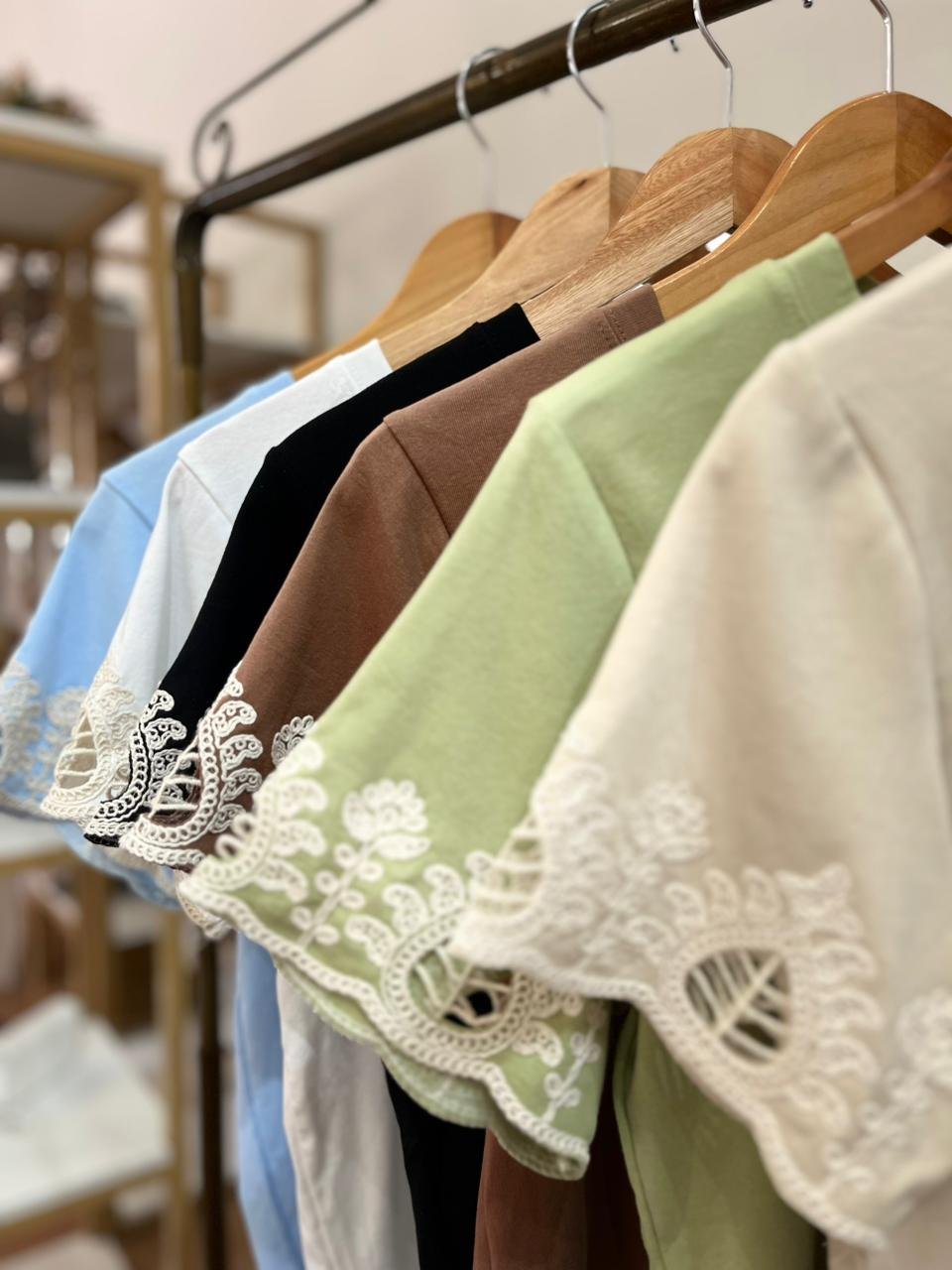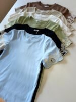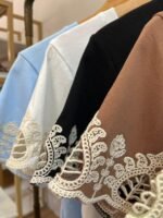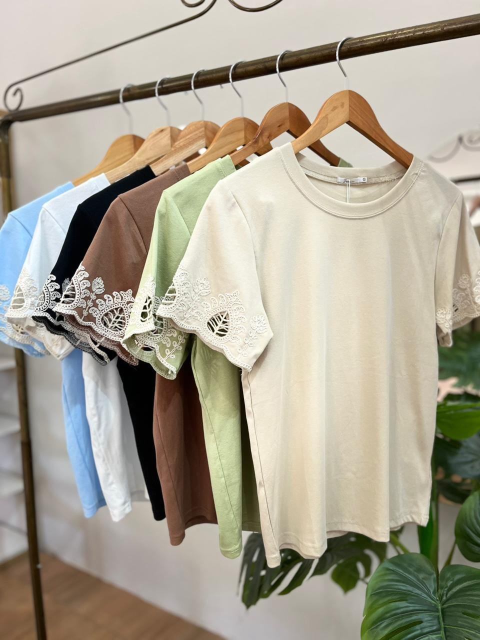 Blusa tecido leve e confortável com elasticidade. Mangas com detalhe bordado. Ideal para compor looks casuais com elegância.