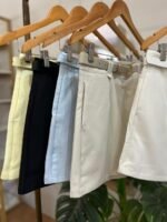 Short saia em tecido de alfaiataria, com modelagem elegante e caimento impecável.